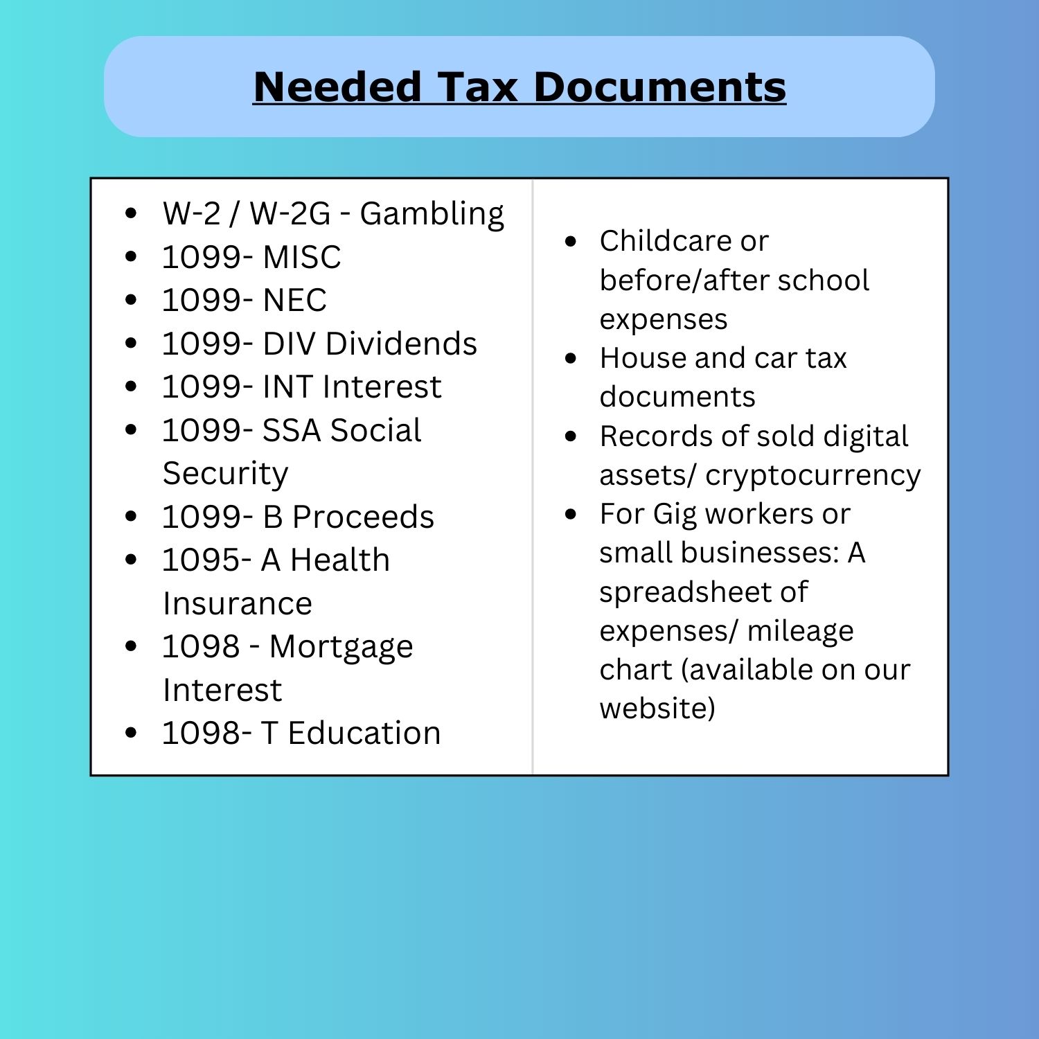 Needed Tax Documents Posted on January 17, 2026 by kyraokonta Needed Tax DocumentsDownload Share this: Share on X (Opens in new window) X Share on Facebook (Opens in new window) Facebook Like Loading... Related